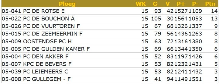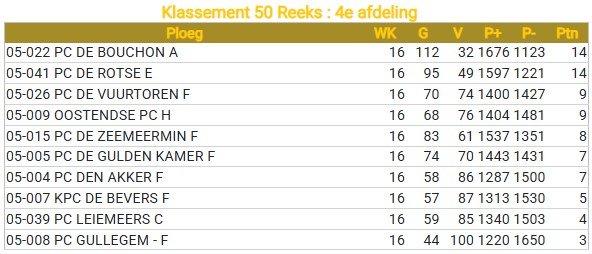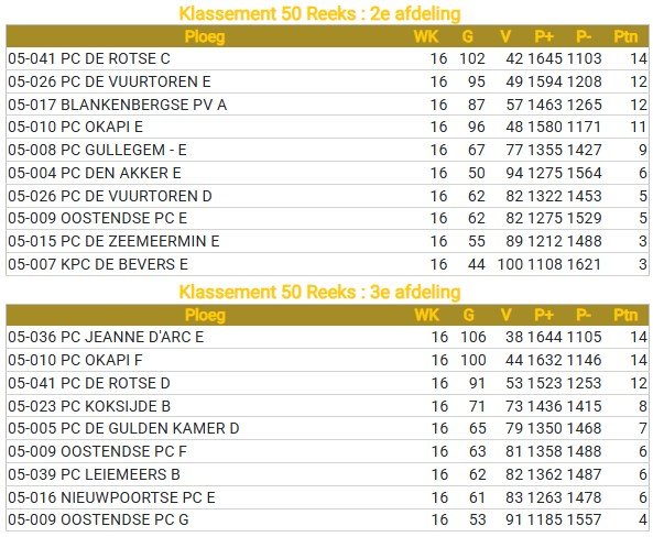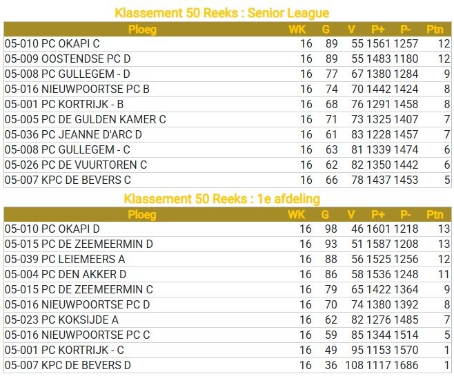 Classement Séniors