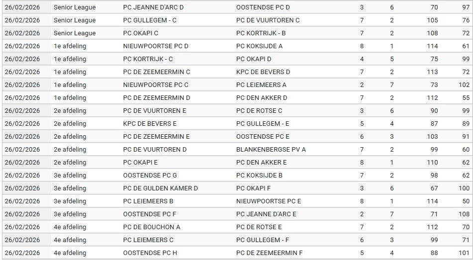 Classement Vétérans 2025/2026